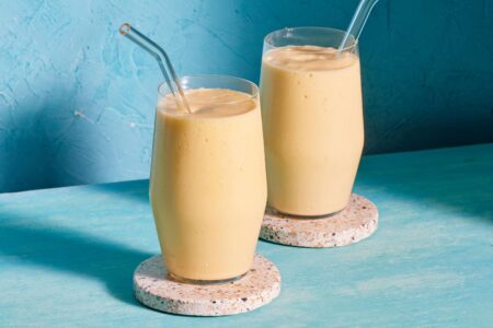 レシピの材料にガムシロップを大さじ1〜2杯ほどプラスするとよりなめらかなスムージーになります。